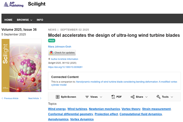 美国物理学联合会《科学之光》(AIP Scilight)专访报道:怀柔实验室科研团队关于长柔叶片弯曲气动效应高效建模的最新研究成果