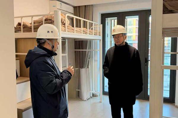 检查结束后,孙龙德院士一行又前往2026年即将启用的新宿舍区进行现场踏勘。在新宿舍区建设现场,他们仔细查看了宿舍样板间,详细了解了工程进度,房间布局、配套设施、公共空间设计等规划情况。他建议相关部门在后续工作中,要充分听取学生意见,优化设计方案,确保新宿舍区建成后能够更好地服务于学生的学习和生活。