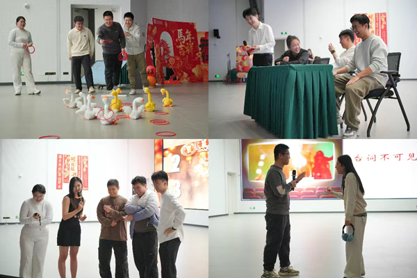活动现场还精心设置了套圈夺宝、团队知识竞答、拼词答题和台词传声筒等多项互动游戏。在套圈夺宝中,同学们瞄准心仪奖品,在挑战中收获乐趣;团队知识竞答涵盖传统文化、听歌识曲等内容,各队争分夺秒、通力协作;台词传声筒环节笑料不断,传话过程中的趣味偏差引得全场欢笑。活动中还穿插进行了多轮抽奖,将惊喜与祝福送至同学们手中,现场洋溢着欢声笑语与浓厚的节日氛围。