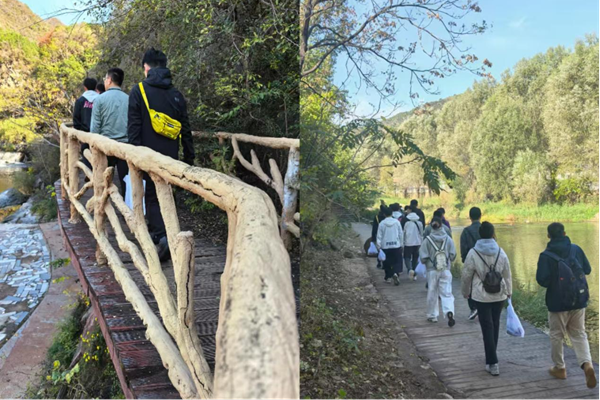 作为系列活动的第三站,本期活动旨在让长期伏案钻研的同学们和老师们“踏出方寸”天地,于自然山水中“寻觅野趣”,感受季节的脉动,为紧张的科研工作注入清新活力。活动伊始,大家在简短的热身运动和安全须知讲解后,便精神饱满地踏上了全长约7.5公里的神堂峪栈道。