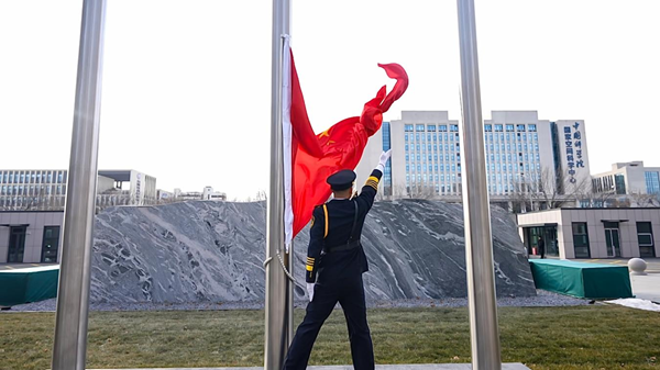 国旗见证下,怀柔国家实验室新一年工作全面展开。